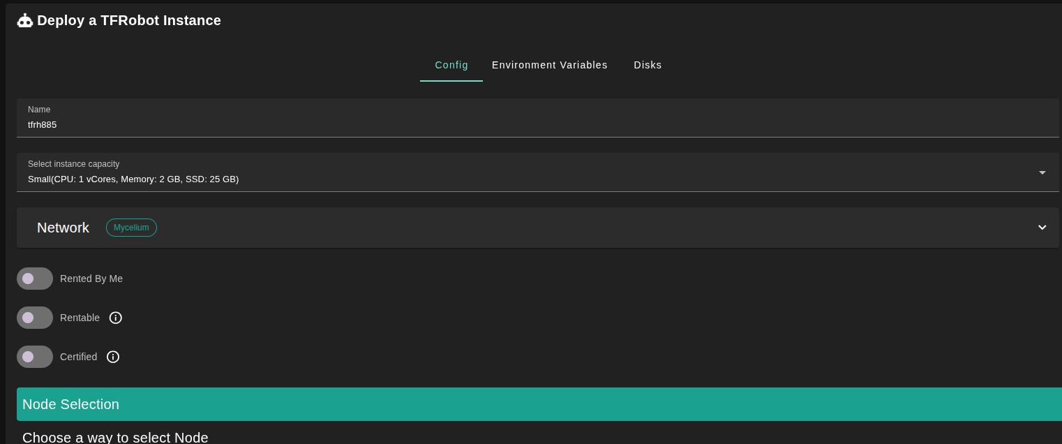 Fill in the instance name: it's used to reference the TFRobot instance in the future.