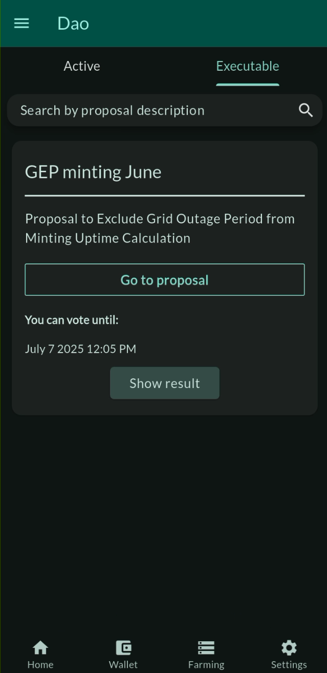 When there are proposals that are ready to be executed, you will be able to vote on them in the section Executable